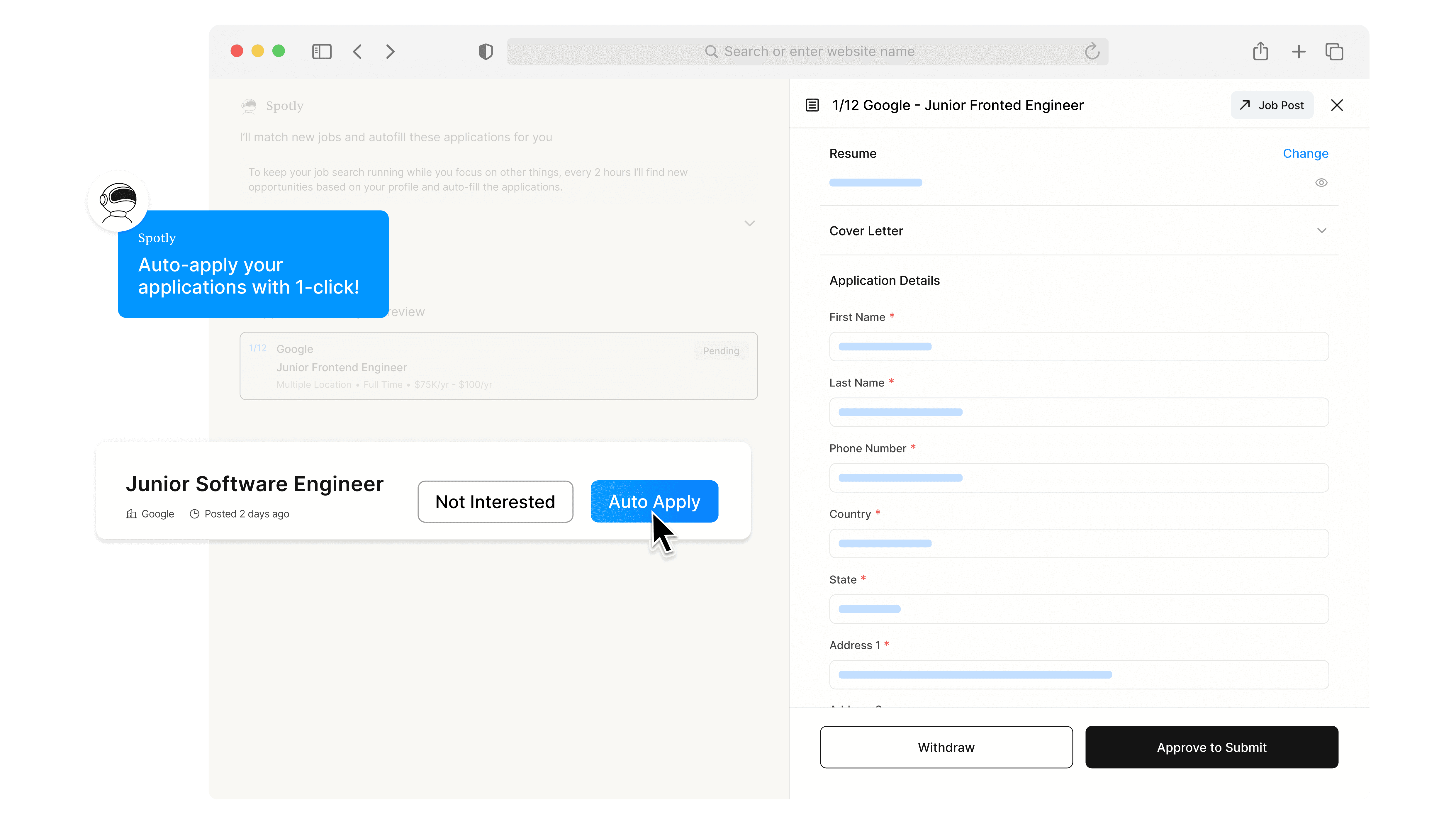 Real-time job board, instant matches, auto-apply, curated referrals, and guided interview prep — all with Spotly